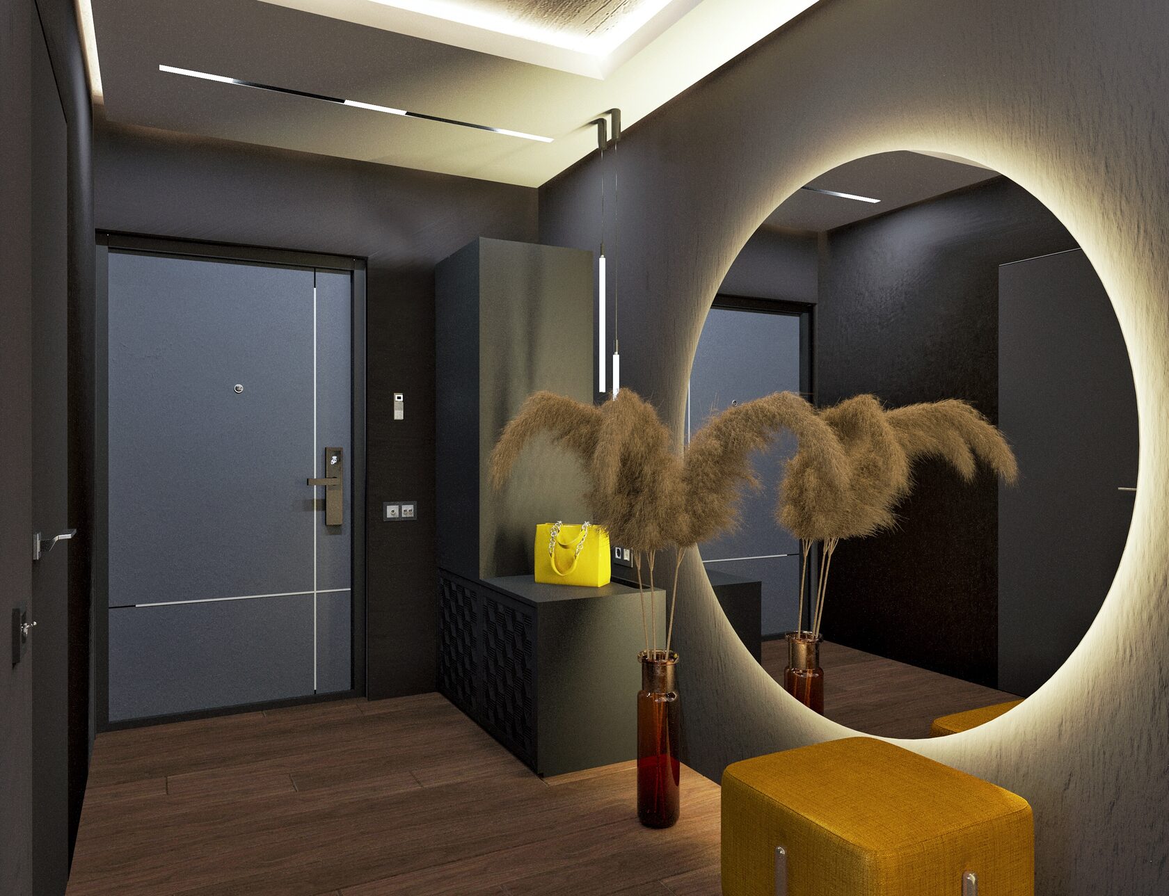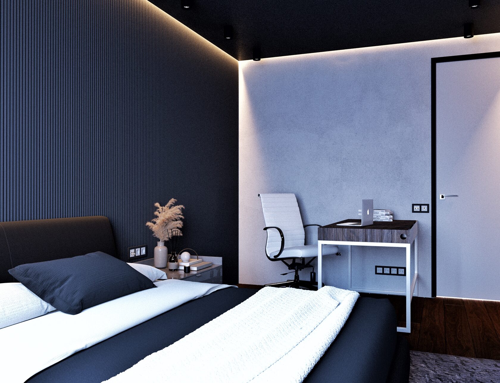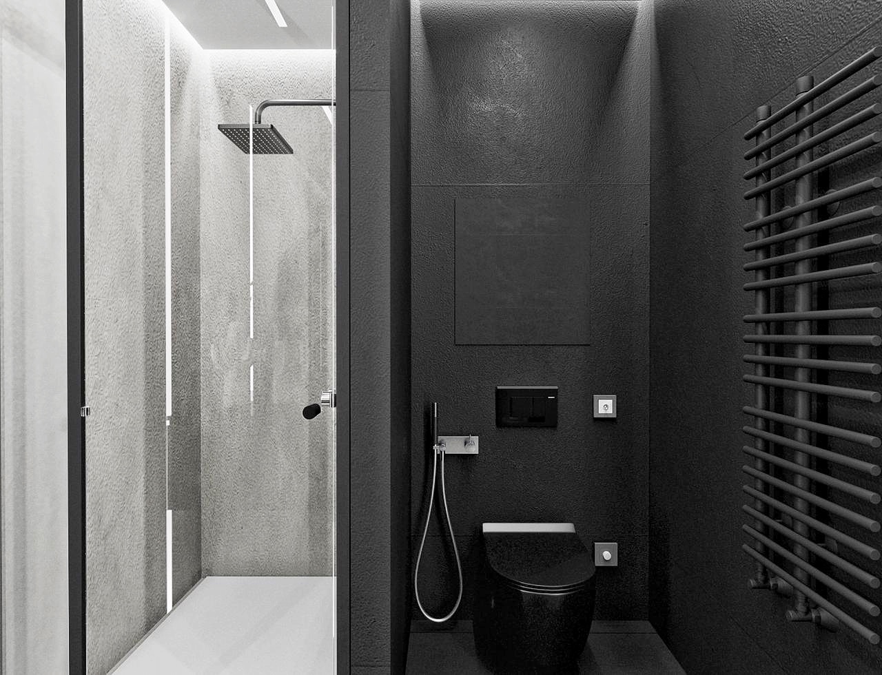 Заказчик проекта – фанат эстетики брутальности и философии минимализма, поэтому концепция строгого, лаконичного, пространства с элементами индастриала, сложилась сразу.